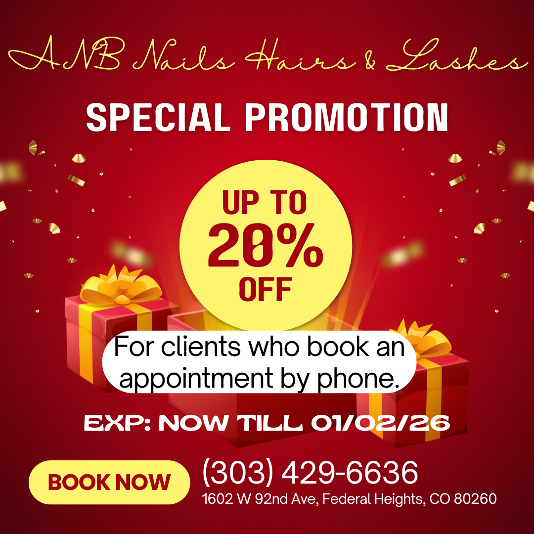 Come and experience our exceptional services at ANB NAILS Hairs & Lashes. Gift Certificate Available- Appointment & Walk-ins Welcome!